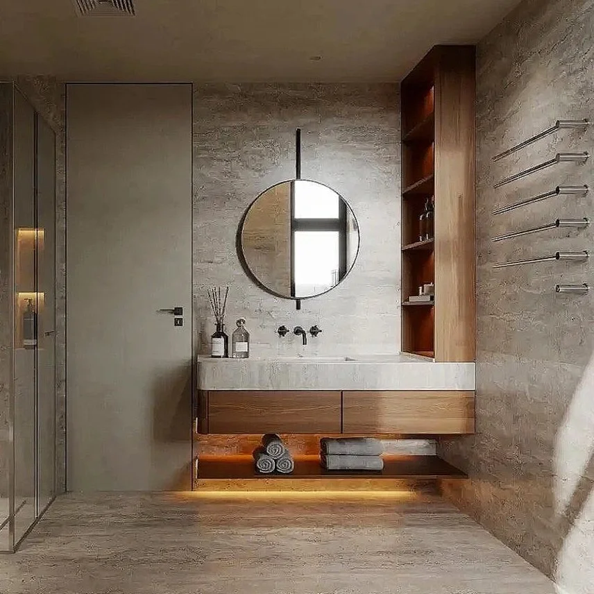 Using materials like travertine, marble tiles, and sintered stone, we create spaces that feel refined, practical, and built to last.