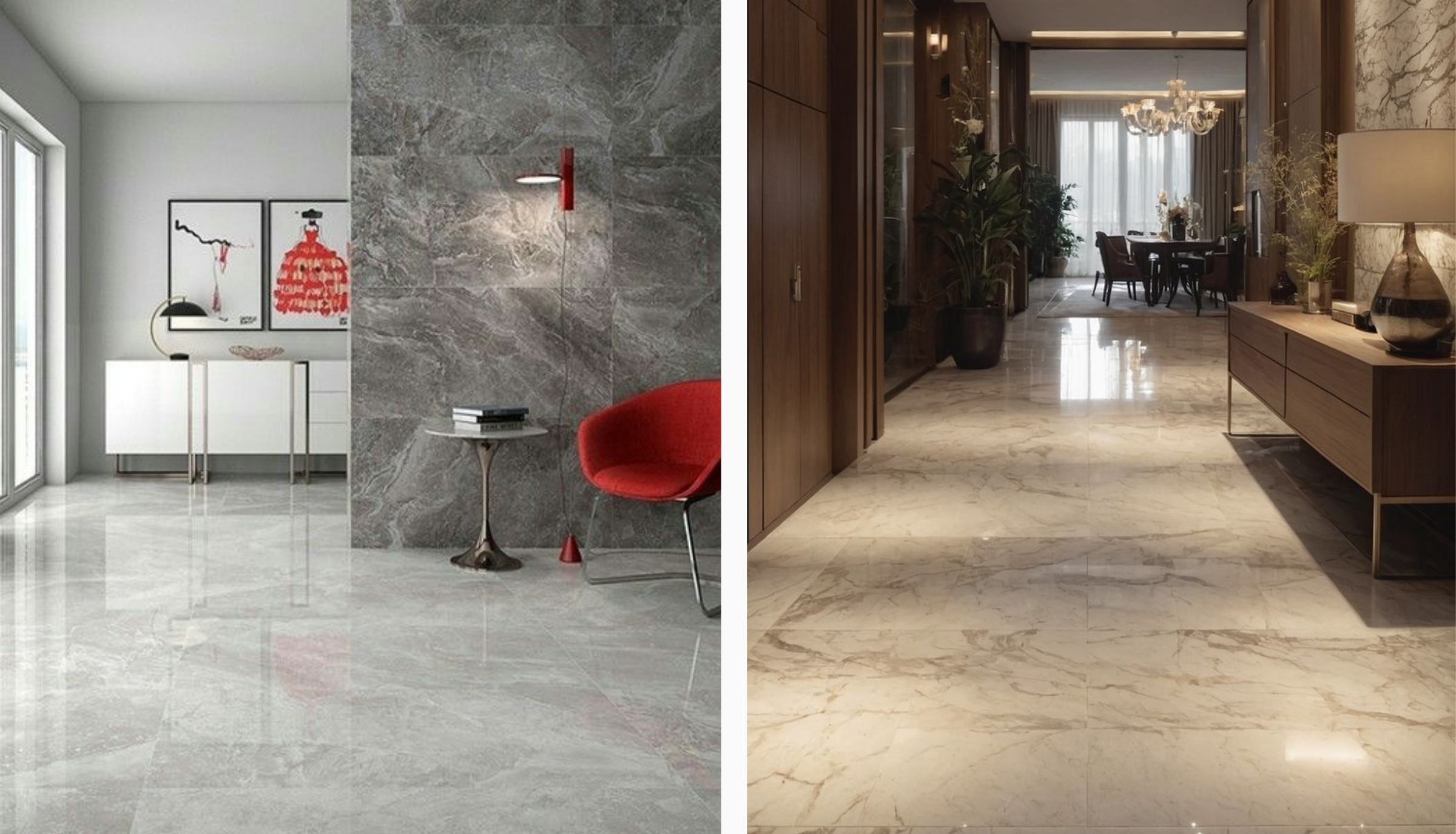 Carrara’s soft grey veining works beautifully in minimalist spaces; Emperador adds warmth and richness to living rooms; while Calacatta, with its bold veins, makes a statement in any modern bathroom or grand foyer.