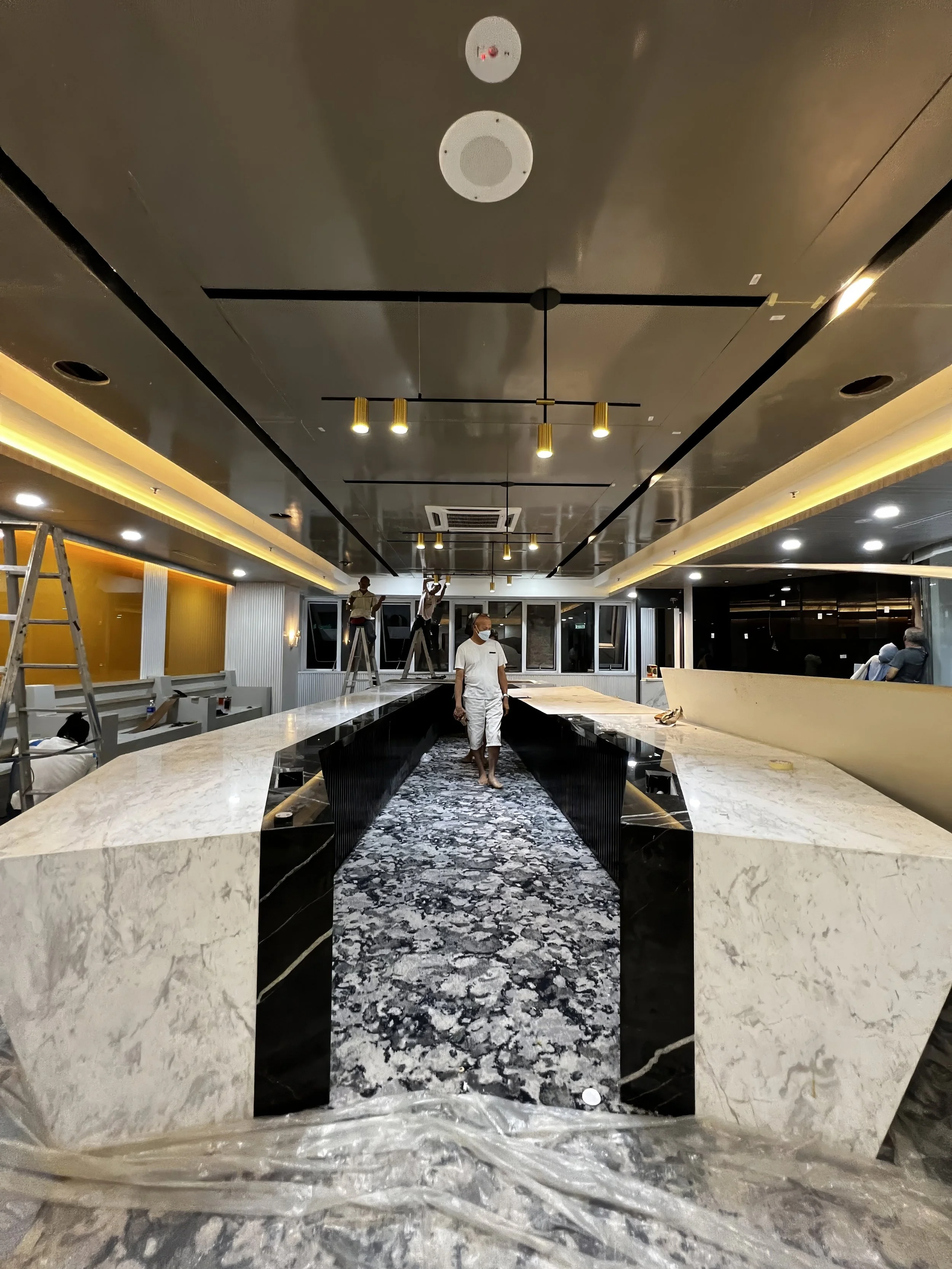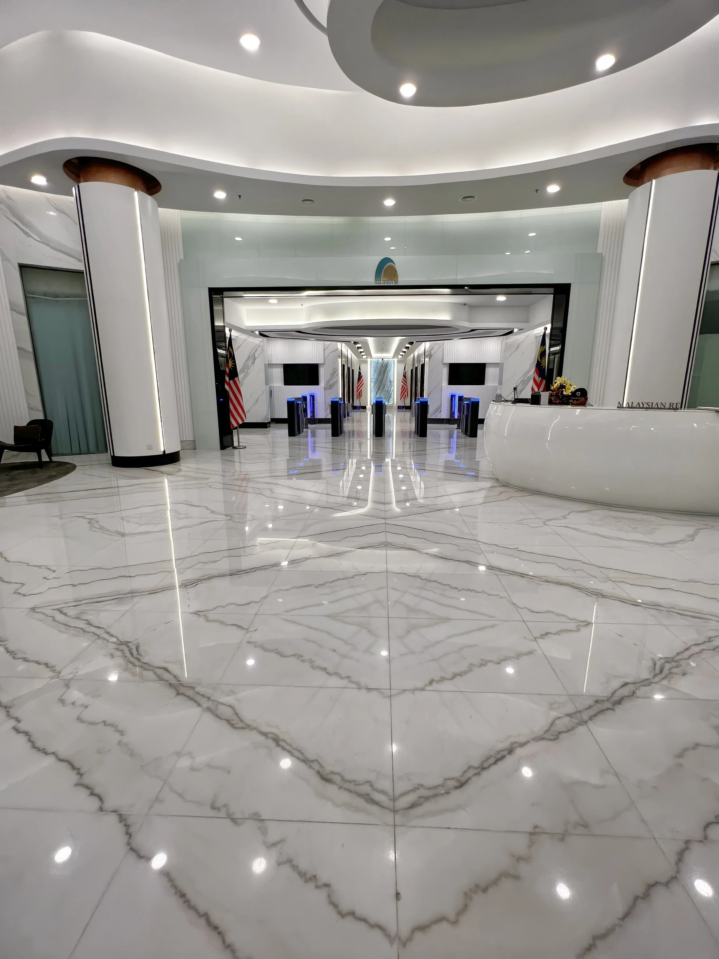 The Malaysian RE Corporate Tower project is a fusion of natural grandeur and architectural finesse. The work began with the outdoor granite installation. selected for its durability and natural elegance, providing a formidable and welcoming exterior.